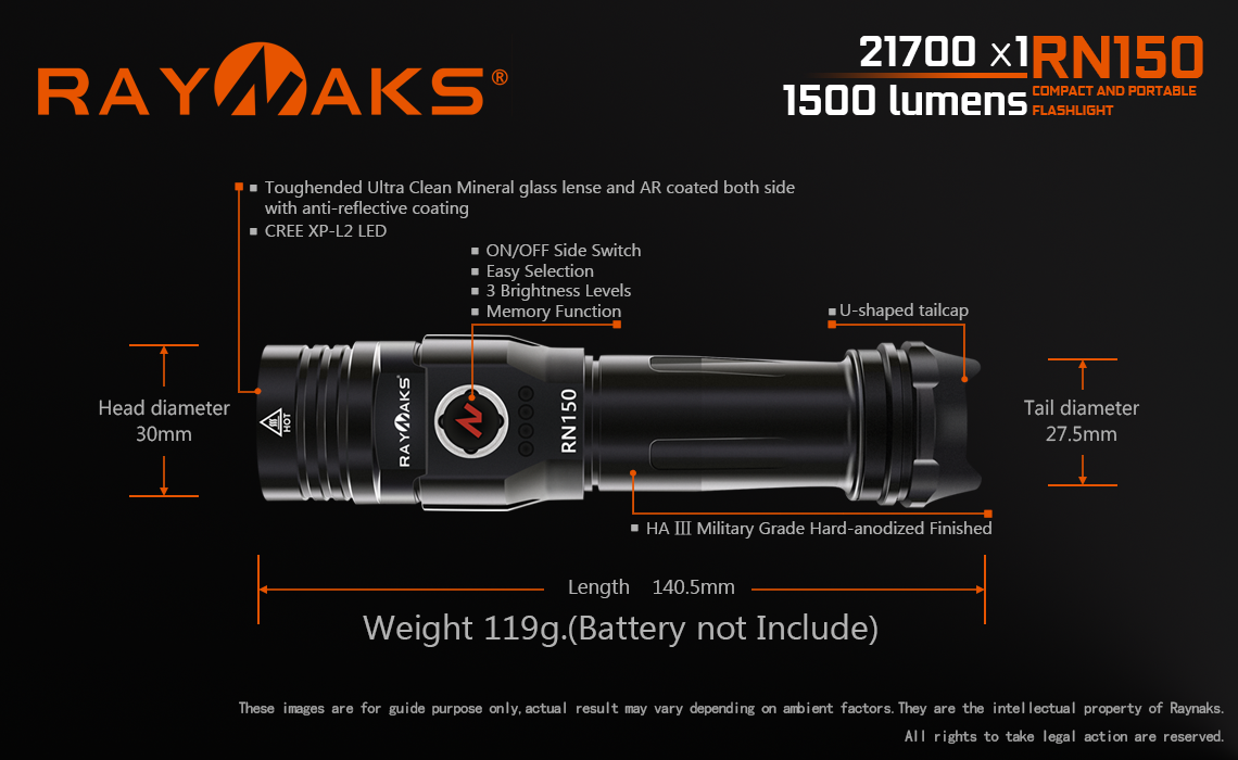 The RN350 is high performance flashlight in a compact size.
