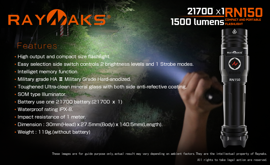 RN150Lightest smallest most compact palm-size searchlightdesigned for the outdoors search and rescue.